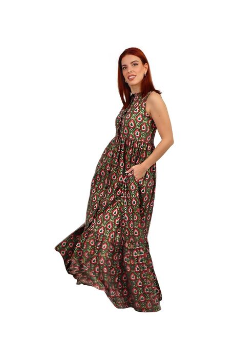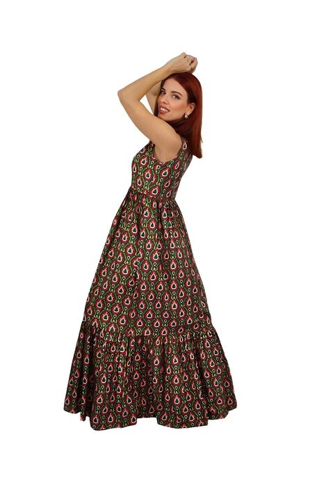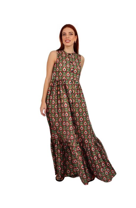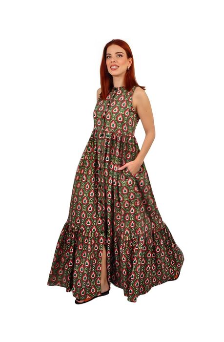 Γυναικείο χειροποίητο maxi φλοράλ φόρεμα σε αποχρώσεις του πράσινου.