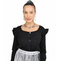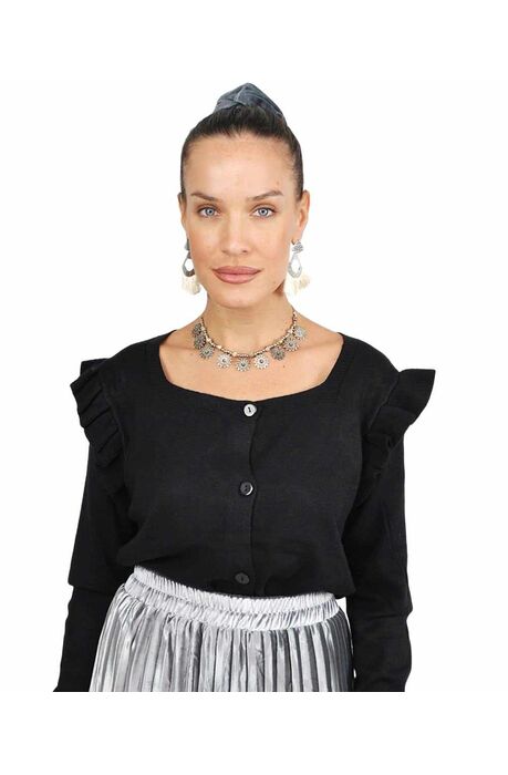 Γυναικεία μαύρη ζακέτα με βολάν στα μανίκια και κουμπιά.