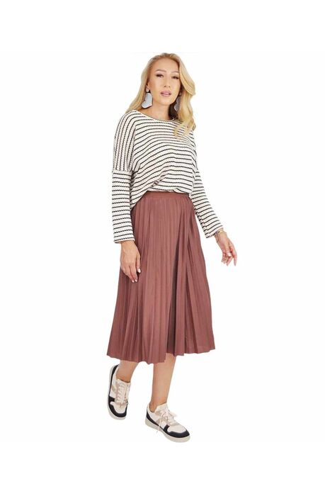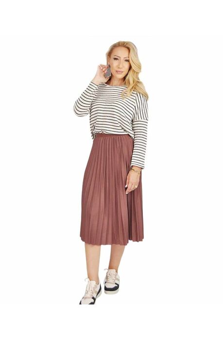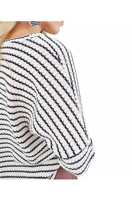 Πλεκτή εκρού μπλούζα με μαύρες ρίγες.
