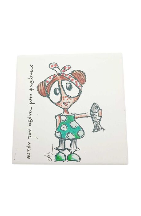 Χειροποίητο σουβέρ, ζωγραφισμένο στο χέρι '' Αυτό το χρόνο μην ψαρώνεις ''.