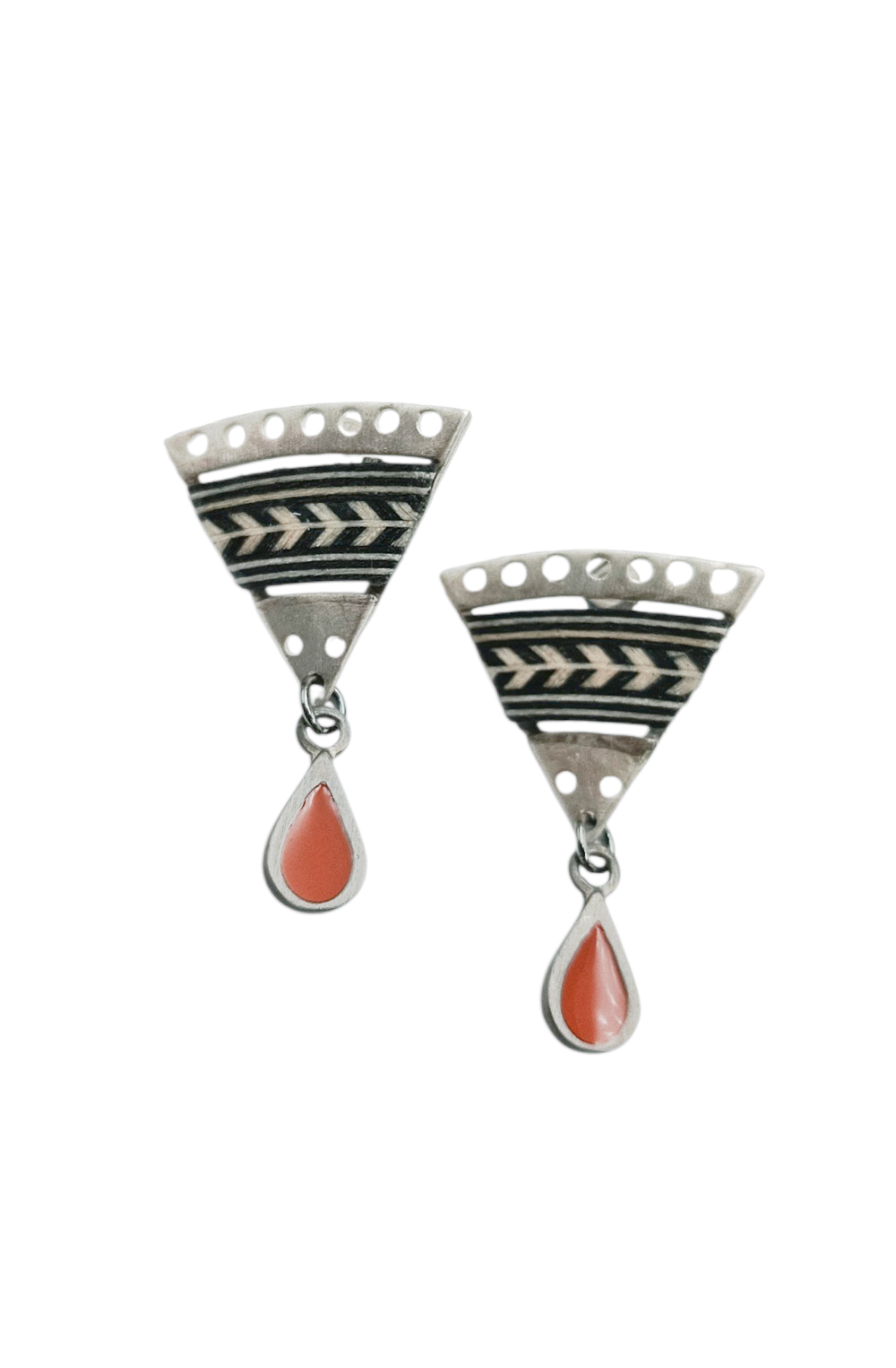 Χειροποίητα καρφωτά σκουλαρίκια με ξύλινο στοιχείο απο κομμάτι ακουστικής κιθάρας δεμένα με επιροδιωμένο ασήμι 925
