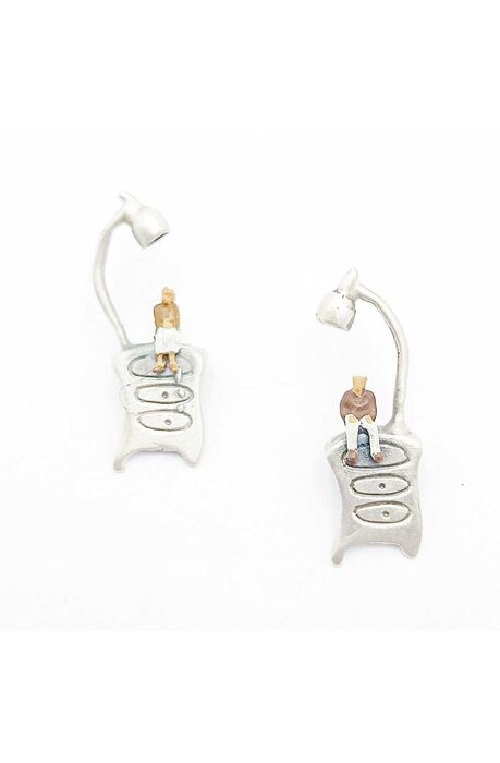 Χειροποίητα καρφωτά σκουλαρίκια με γυναίκα και άντρα, καθισμένους πάνω σε γραφείο.