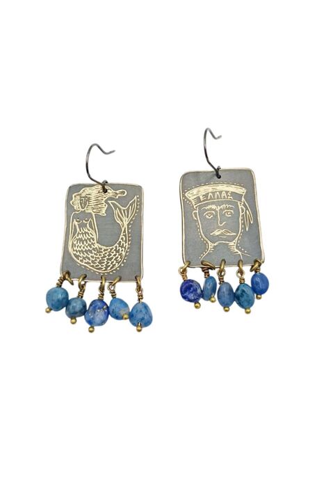 διακοσμημένα με μπλε ημιπολύτιμους λίθους και γάντζους από ασήμι 925.