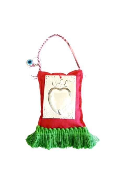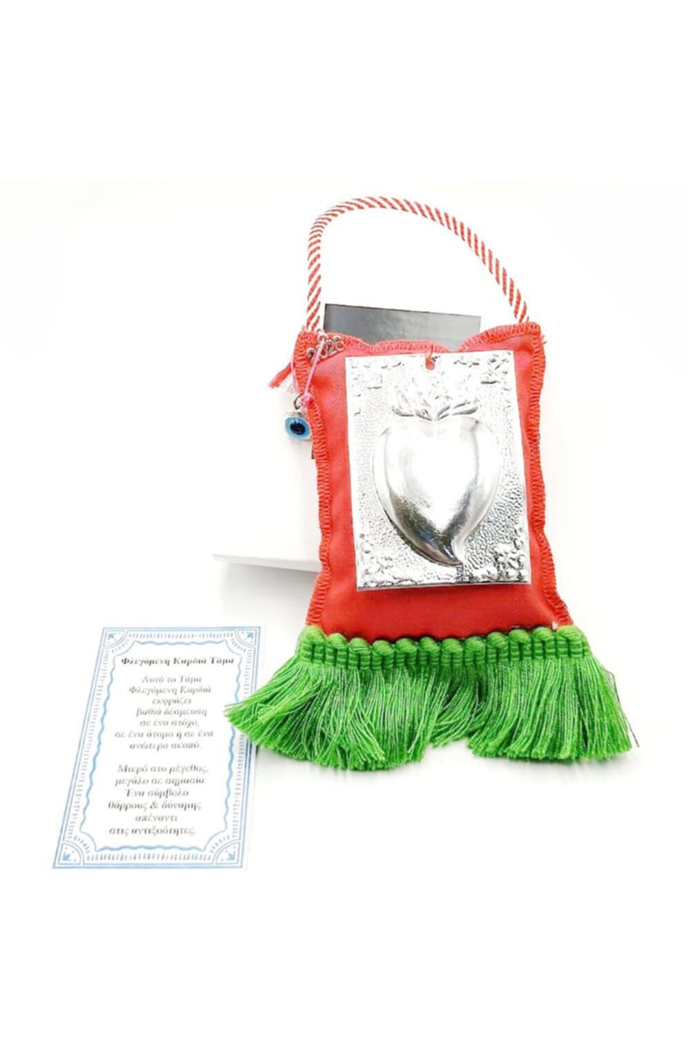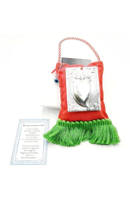 Ένα μοναδικό γούρι για τη νέα χρονιά, με ασημί μεταλλικό καρδιά πάνω σε υφασμάτινο μαξιλαράκι.
