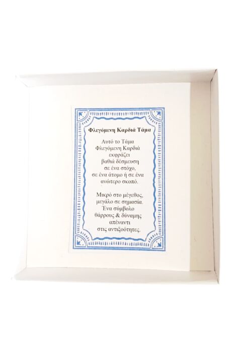 Χειροποίητο γούρι φλεγόμενη καρδιά. Η καρδιά πάνω στο τάμα είναι σύμβολο αγάπης.
