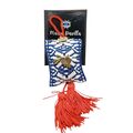 διακοσμημένο με κόκκινο κορδόνι και φούντες.