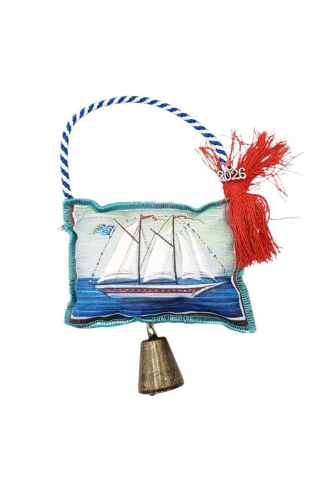 Χειροποίητα κρεμαστό μαξιλαράκι, με ζωγραφισμένο καράβι,