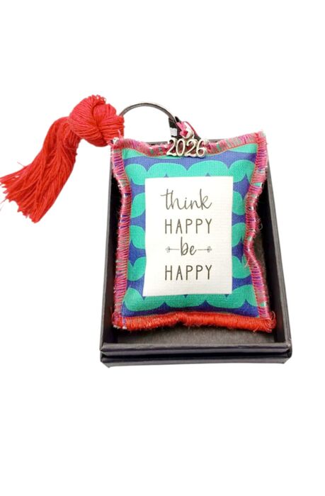 Χειροποίητο πάνινο μπρελόκ γούρι για τη νέα χρονιά που έρχεται, ''think happy,be happy ''