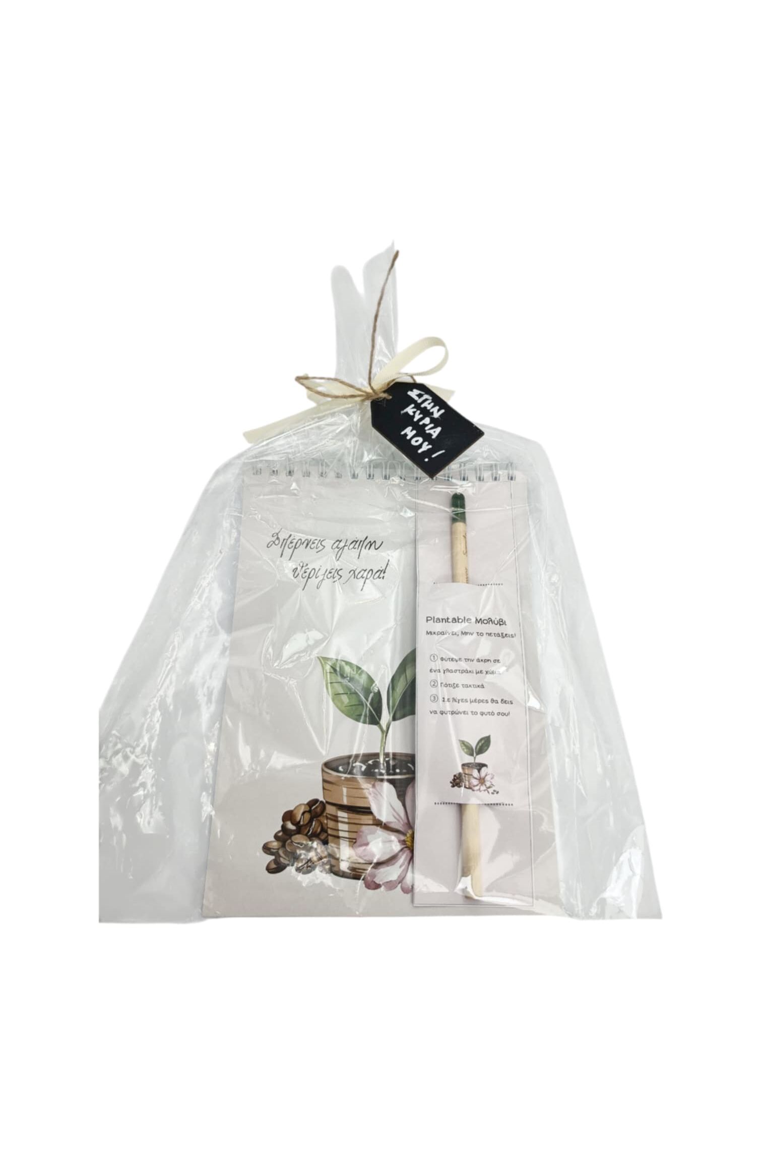 Σετ δώρου '' Σπέρνεις αγάπη, θερίζεις χαρά ''με σημειωματάριο και plantable μολύβι με σπόρους για τη δασκάλα