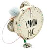 Δεμένο με χειροποίητο μεταλλικό στοιχείο 26, πον πον ,κορδόνι και πράσινο κουδουνάκι.