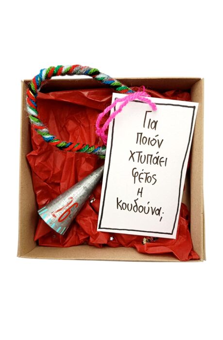 Χειροποίητο γούρι κουδούνα με πολύχρωμα κορδόνια σε πλεξούδα.