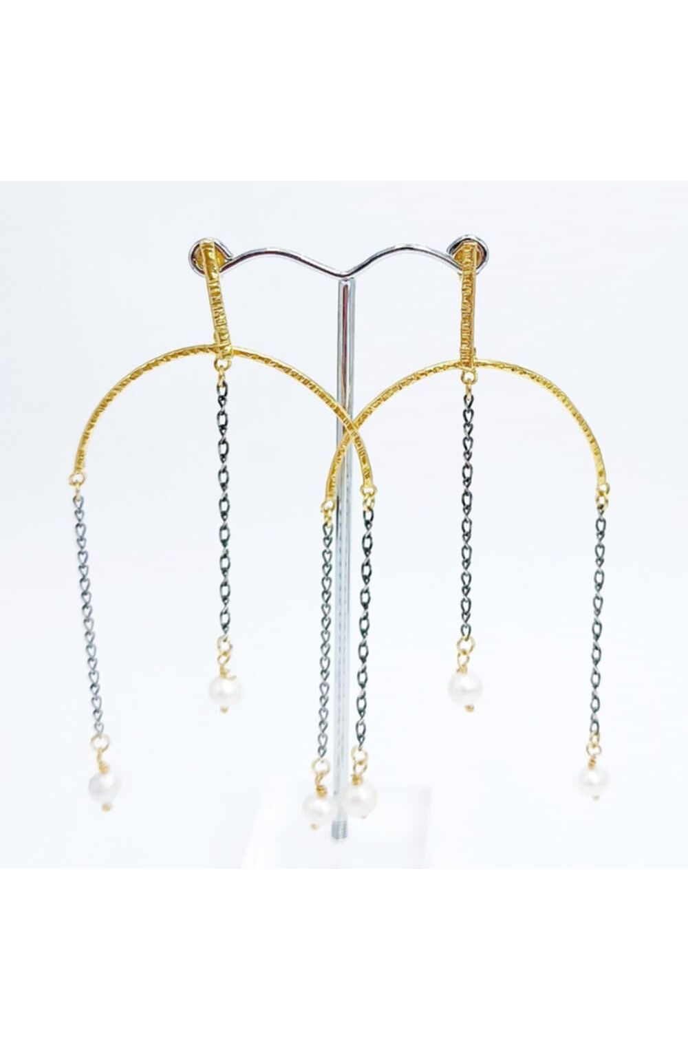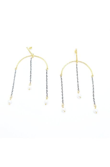 Χειροποίητα απο επιχρυσωμένο και επιροδιομένο ασήμι 925,με κρεμαστή αλυσίδα και δεμένα με μαργαριτάρια,